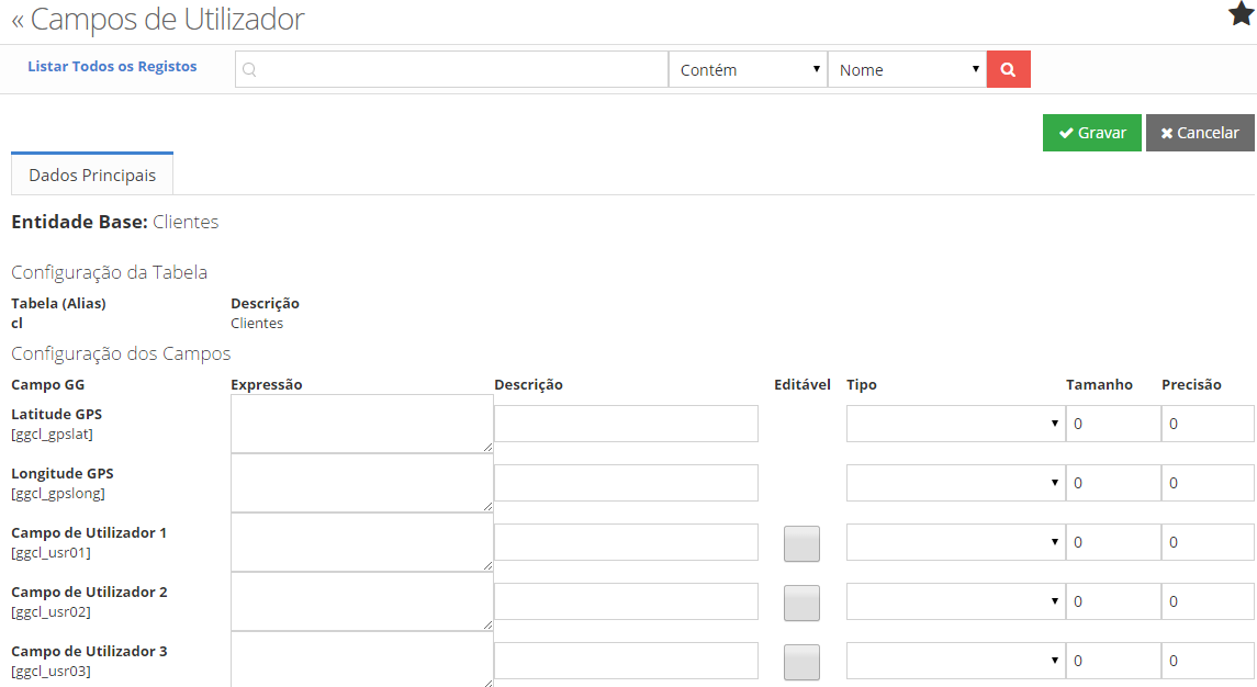 passam a estar disponível para edição todos os Campos de Utilizador.