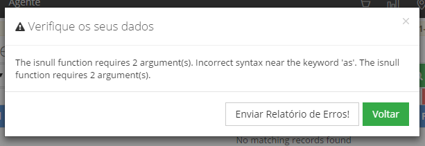Erro ao tentar visualizar um registo que inclui o Campo de Utilizador com uma Expressão SQL incorreta |